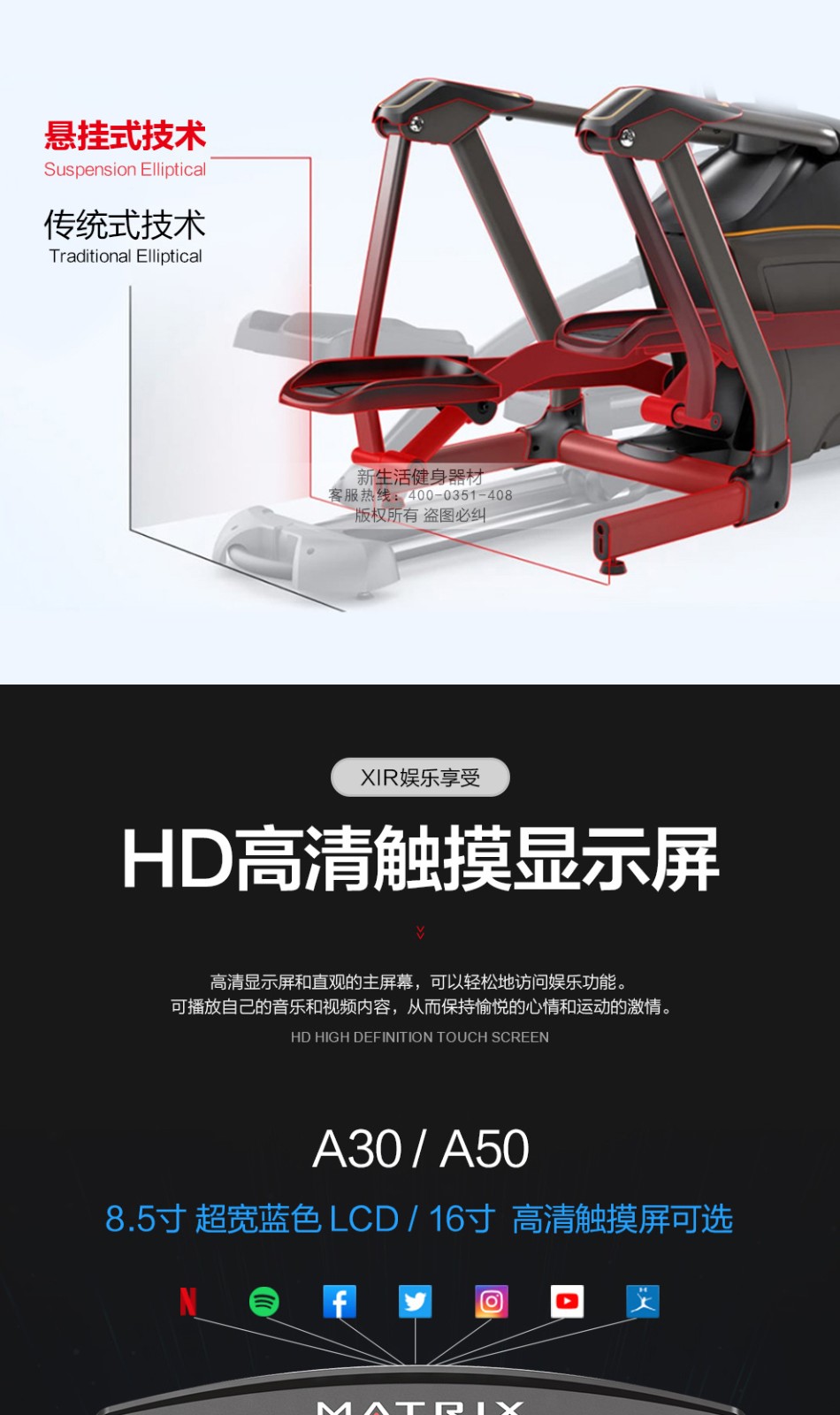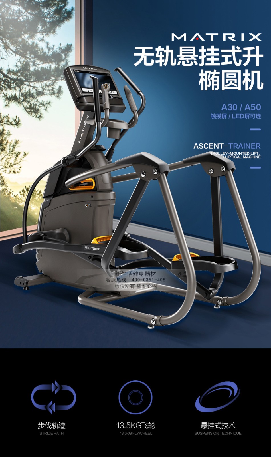 美國喬山橢圓機家用橢圓儀A50XR/A50XI 智能無軌懸掛式升降式家用橢圓機