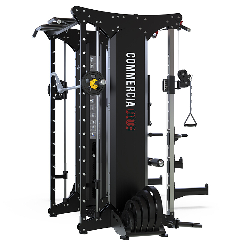 康強史密斯機G608綜合訓練器 健身器材龍門架 深蹲臥推杠鈴架 主機+3018+地膠+PU105kg+2.2m+1.2m
