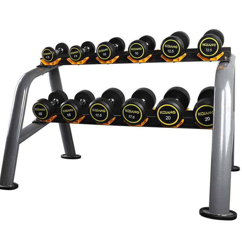 康強商用包膠啞鈴男士健身器材健身房包膠固定式啞鈴 7.5KG-20KG含6付啞鈴架